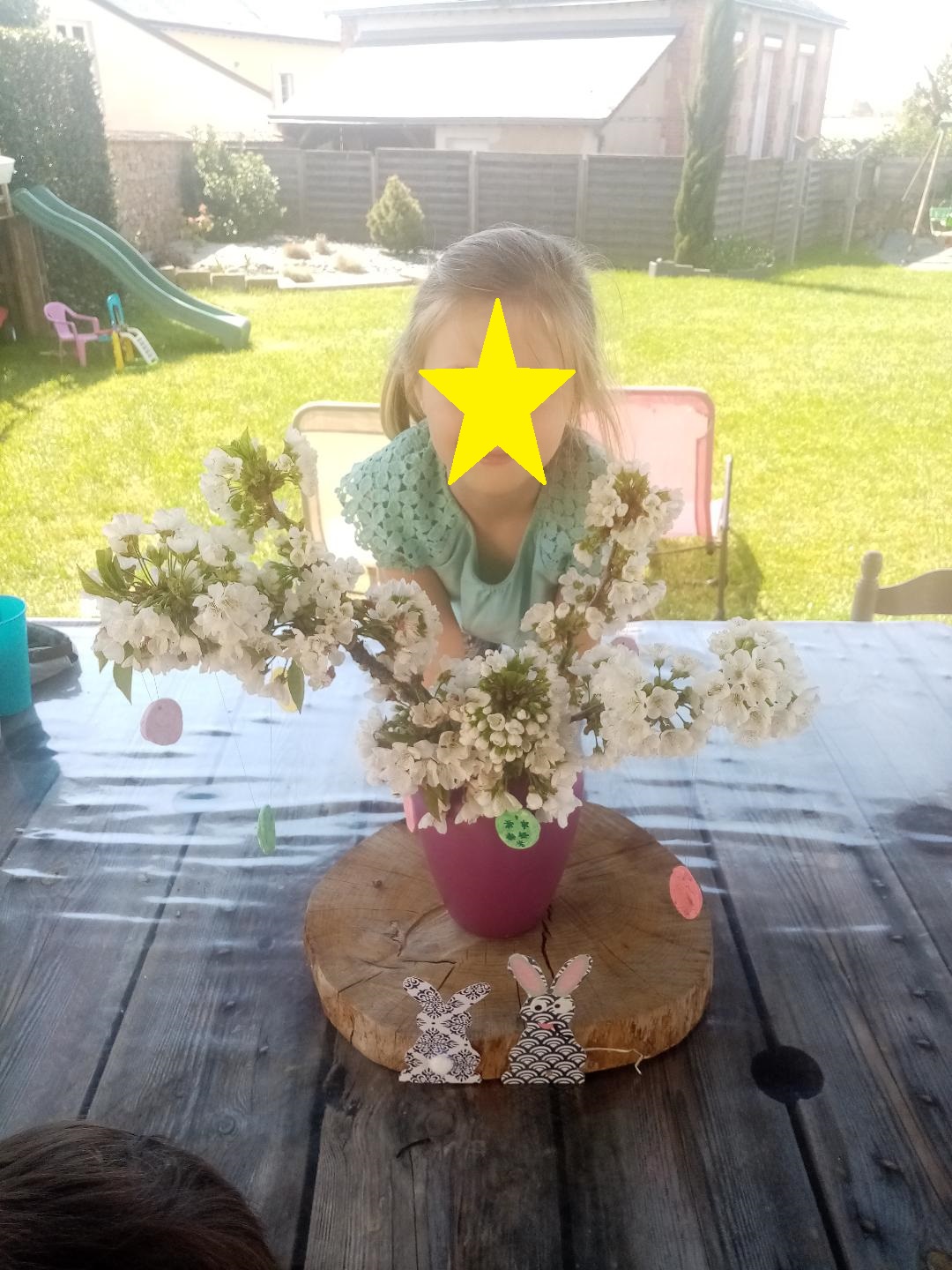 Anna a terminé son lapin et a réalisé une jolie composition en fleurs.
